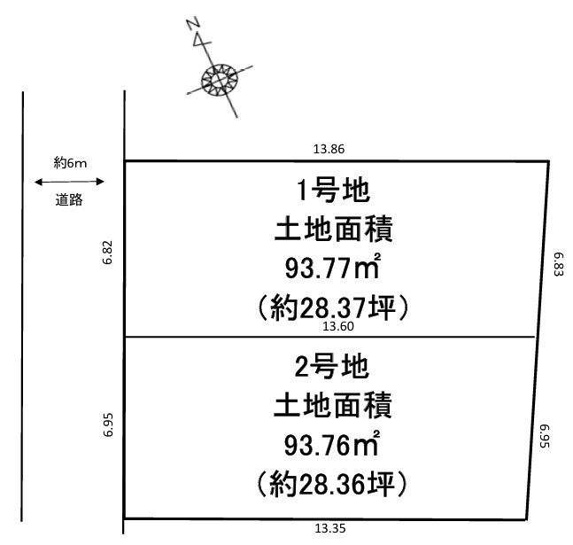【外観】2区画限定販売!敷地面積約28.37坪!小学校徒歩5分!前面道路は幅員約6mで駐車も楽々です♪