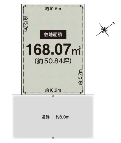 【外観】敷地約50.84坪南東向きの土地です。更地で引渡しいたします。前面道路は幅員約8mで広いです。